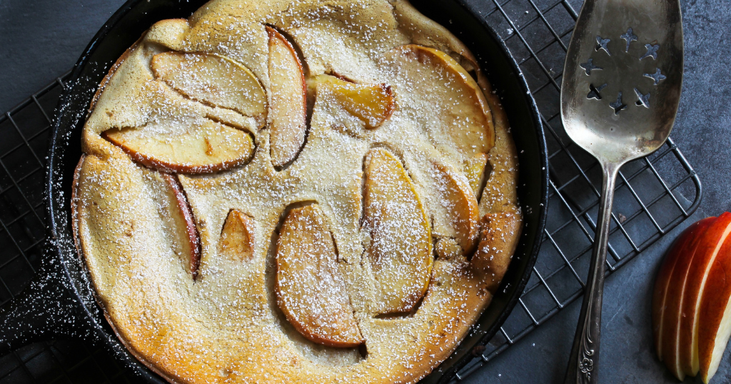 A skillet apple popover is a delightful, comforting dessert that combines the light, airy texture of a classic popover with the warm, spiced flavors of baked apples.