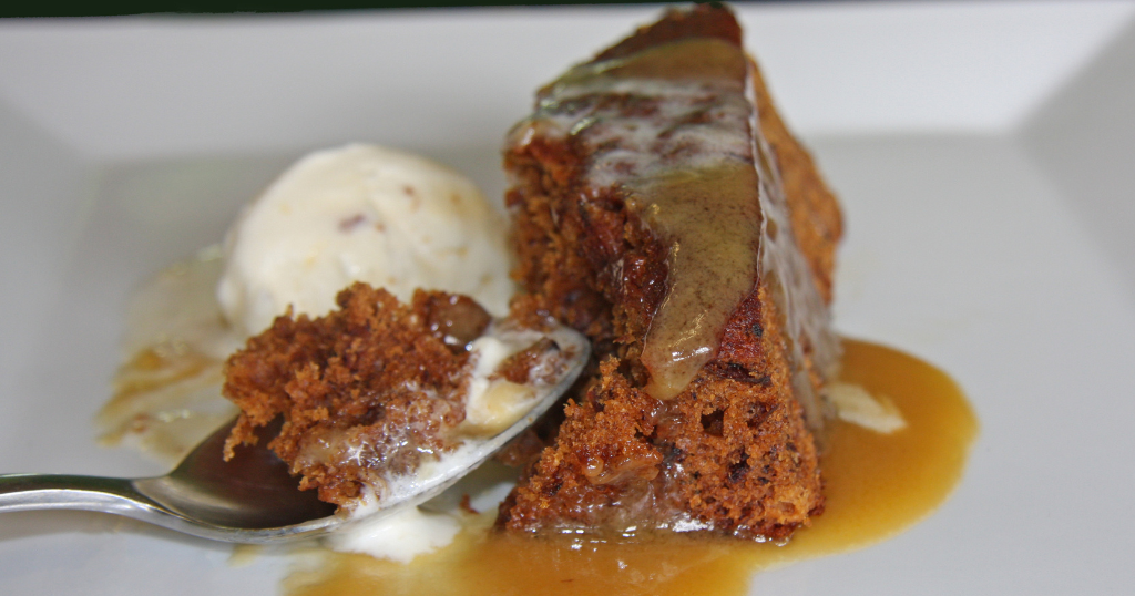 Boozy sticky date pudding is a warm, indulgent dessert featuring rich, moist cake made with sweet dates and a splash of liquor to elevate the flavors.